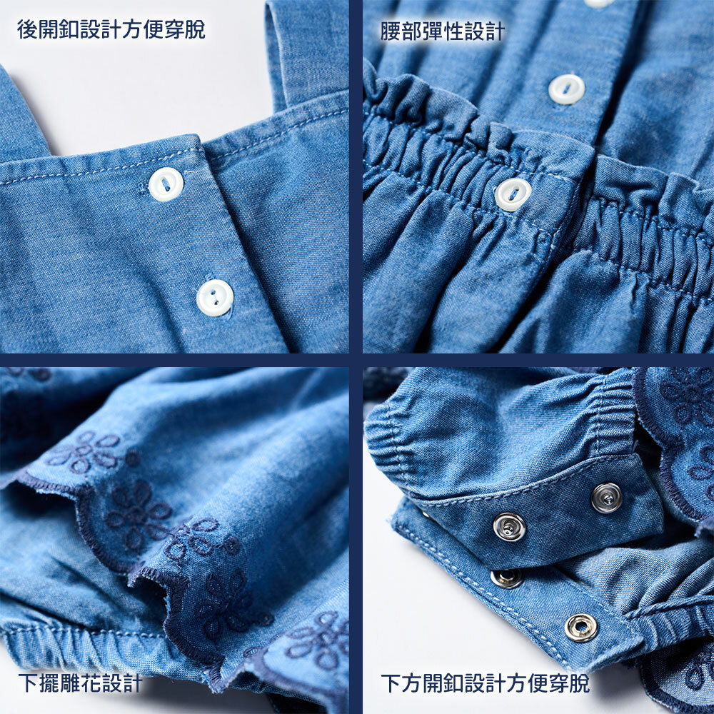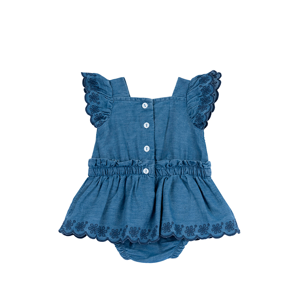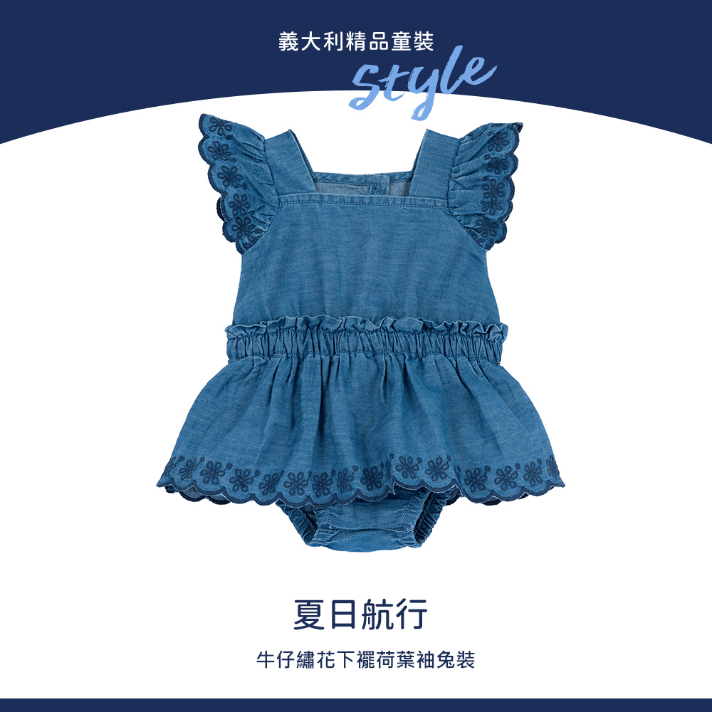 夏日航行-牛仔繡花下襬荷葉袖兔裝