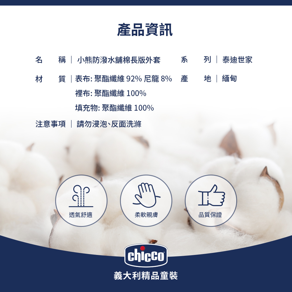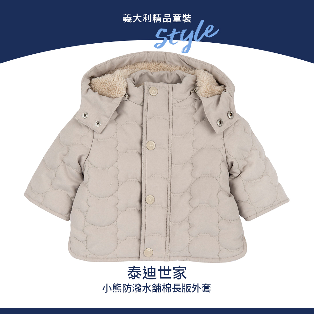泰迪世家-小熊活動帽防潑水舖棉長版外套