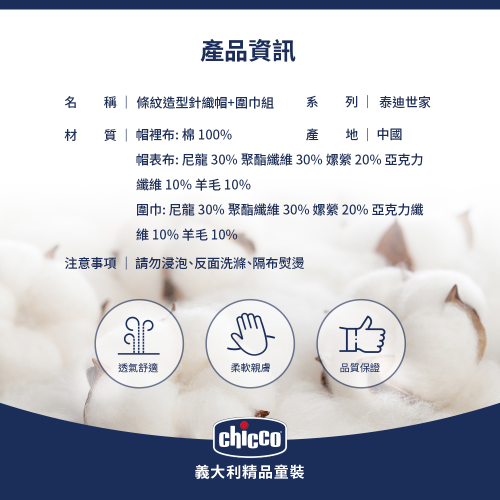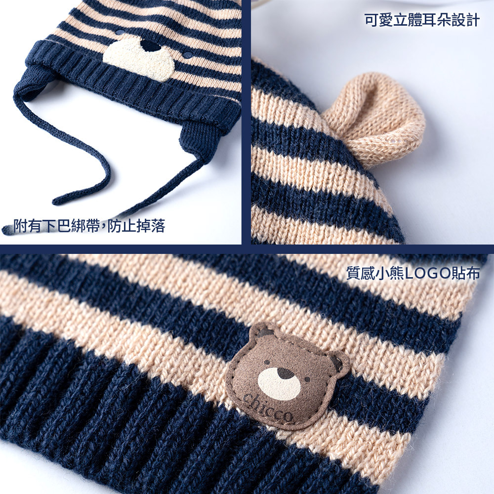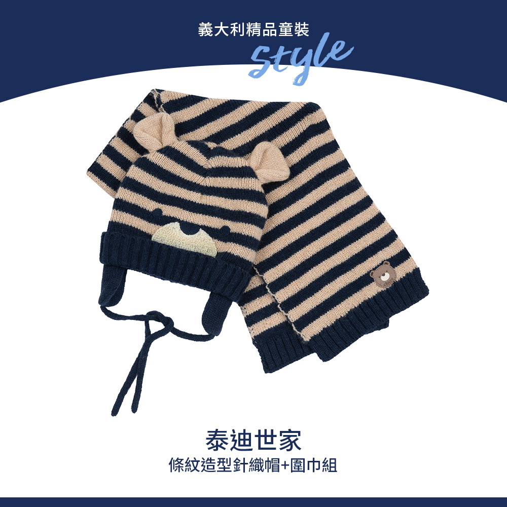 泰迪世家-條紋造型針織帽+圍巾配件組