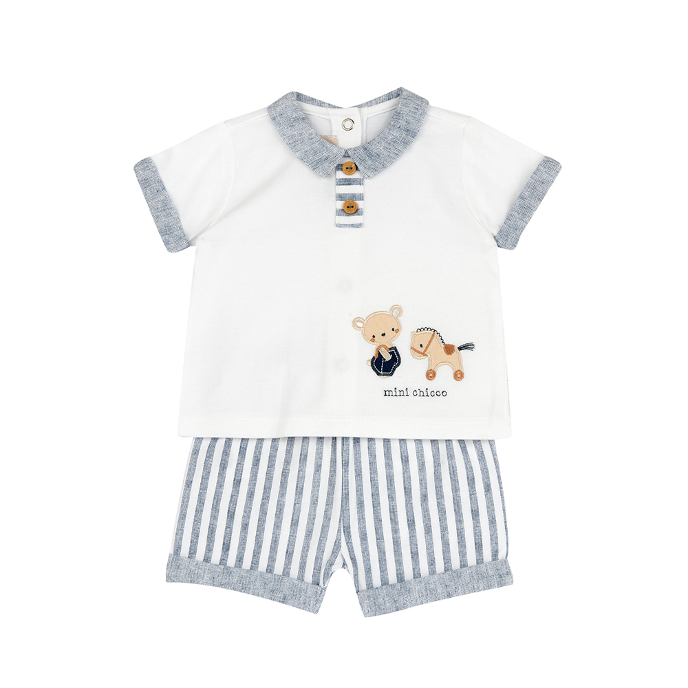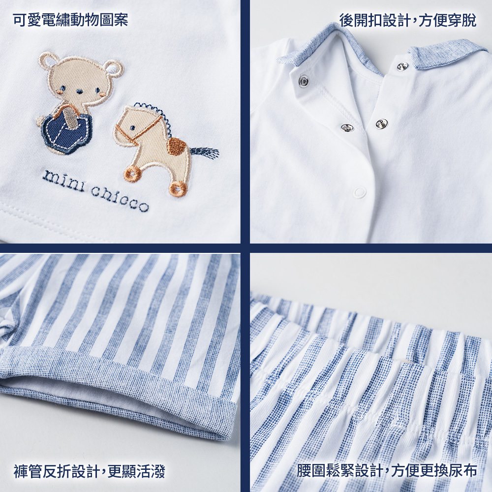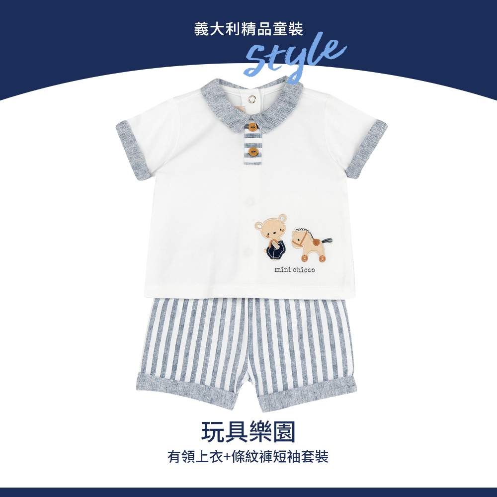 玩具樂園-有領上衣+條紋褲短袖套裝