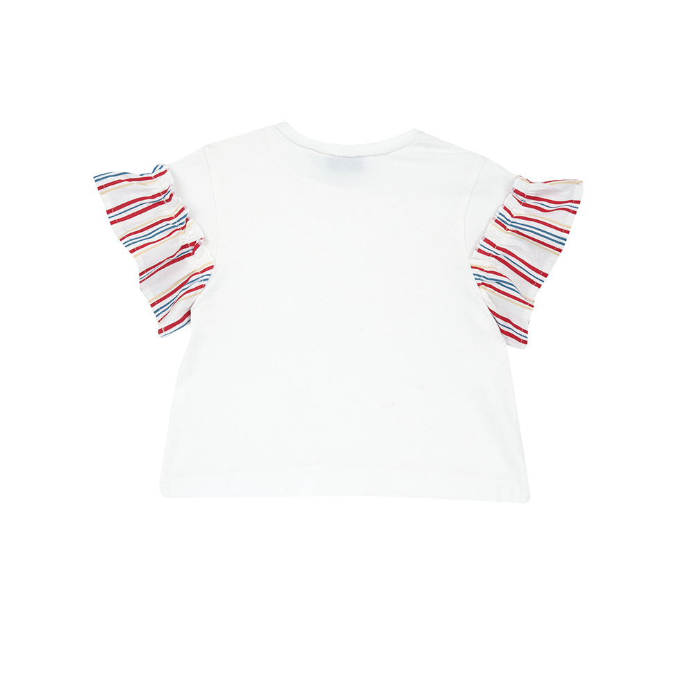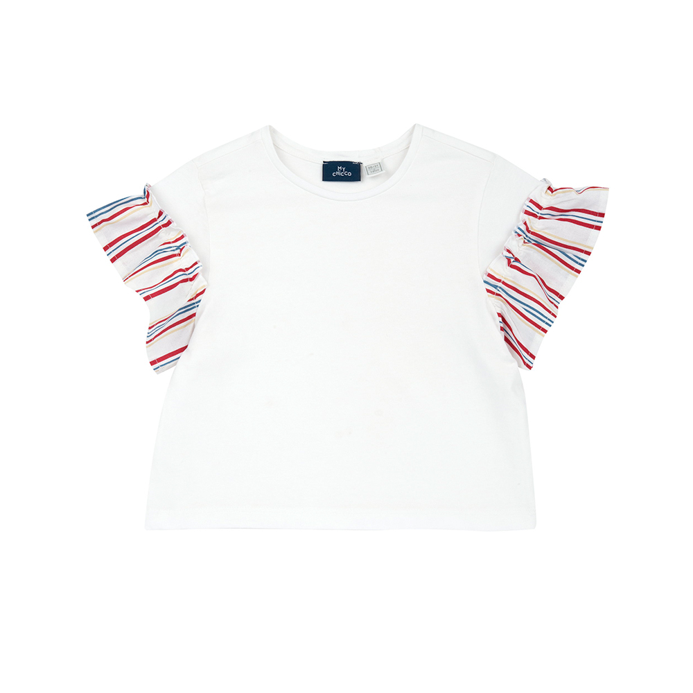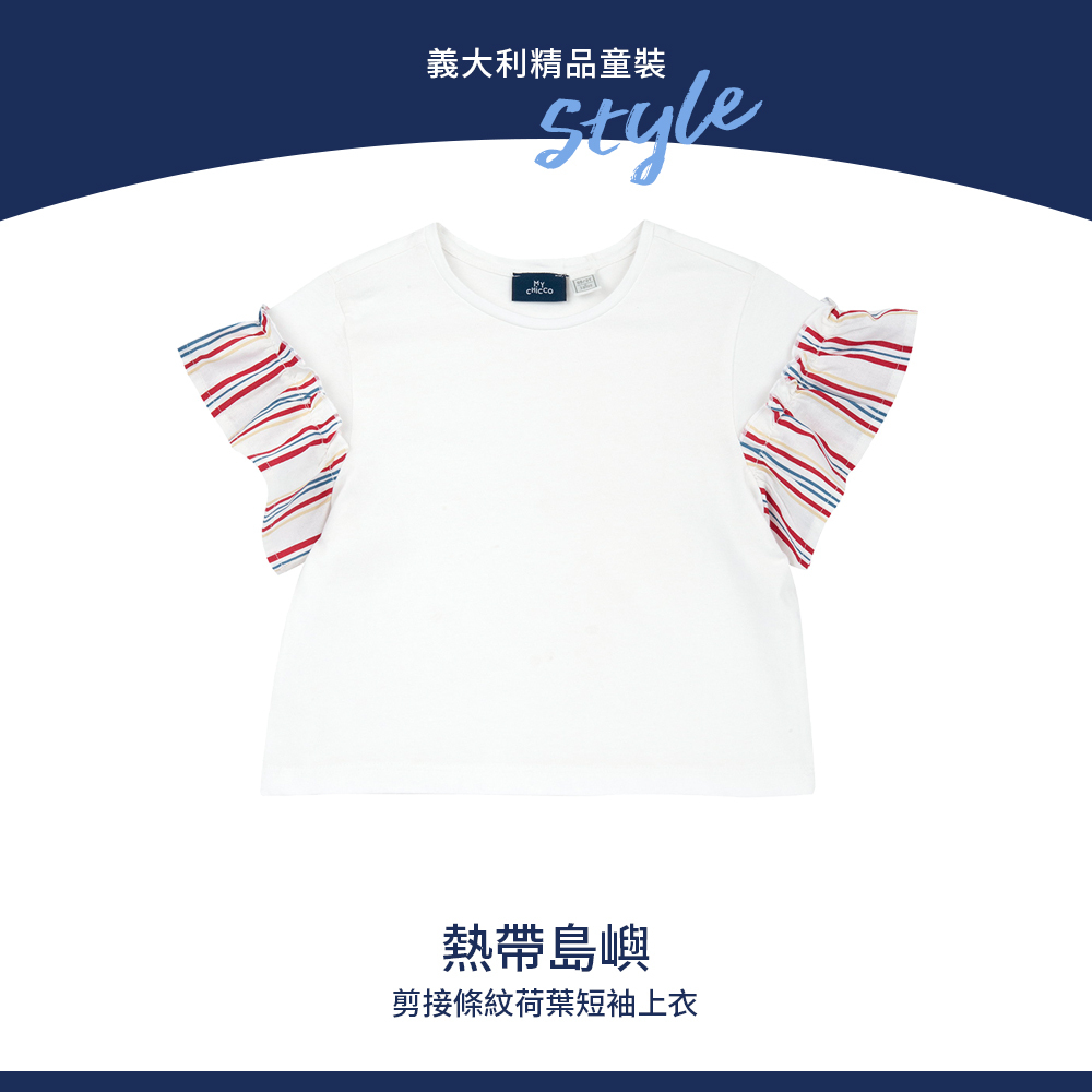 熱帶島嶼-剪接條紋荷葉短袖上衣