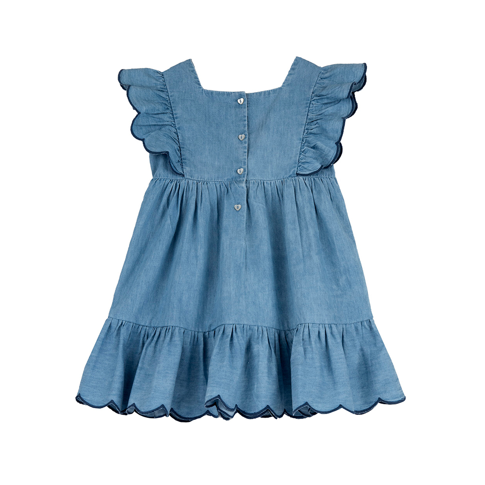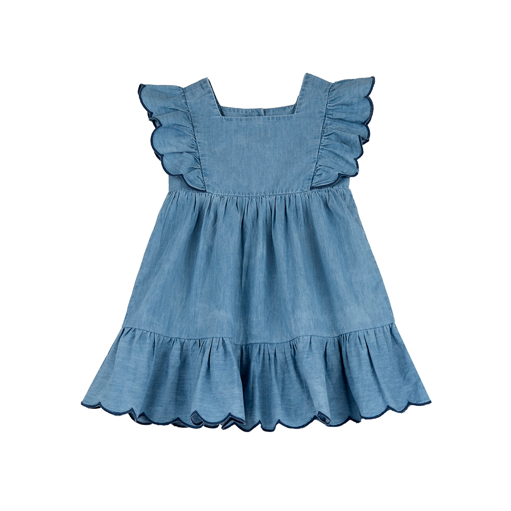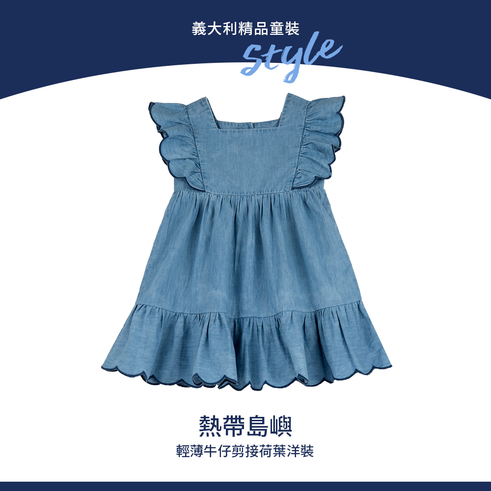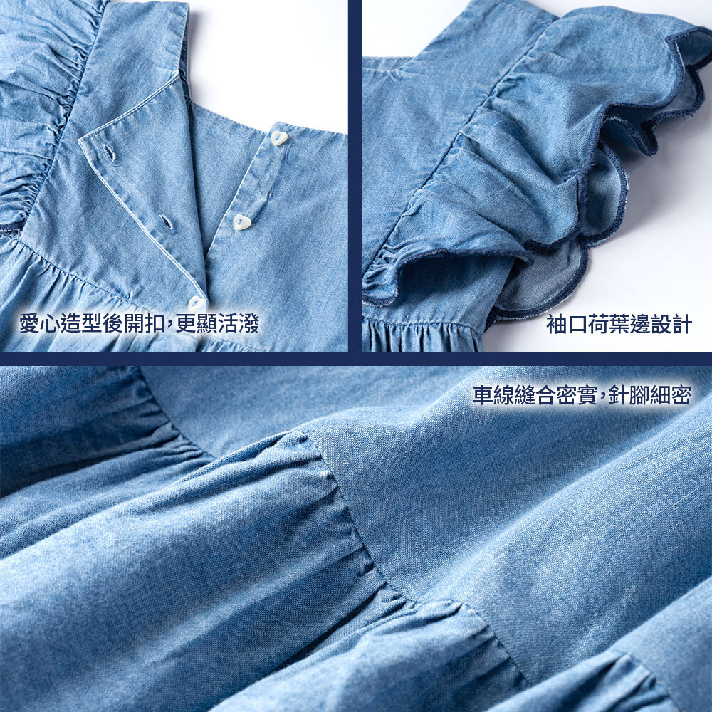 熱帶島嶼-輕薄牛仔剪接荷葉洋裝
