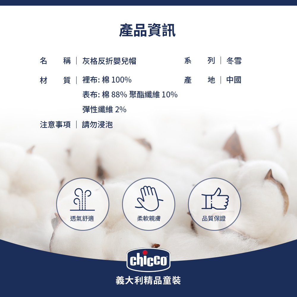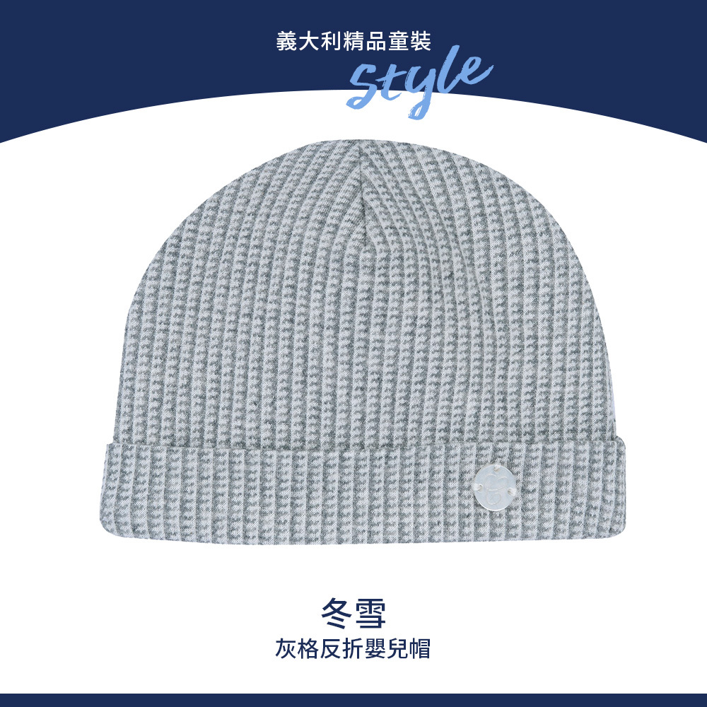 冬雪-灰格反折嬰兒帽