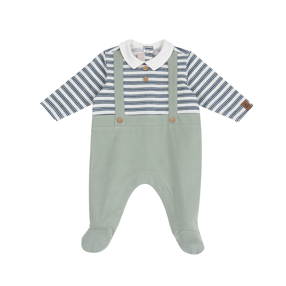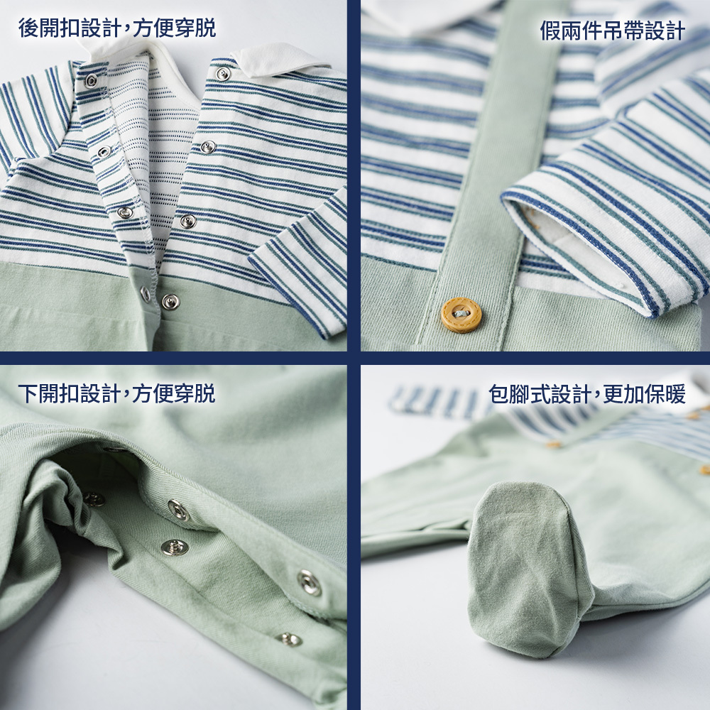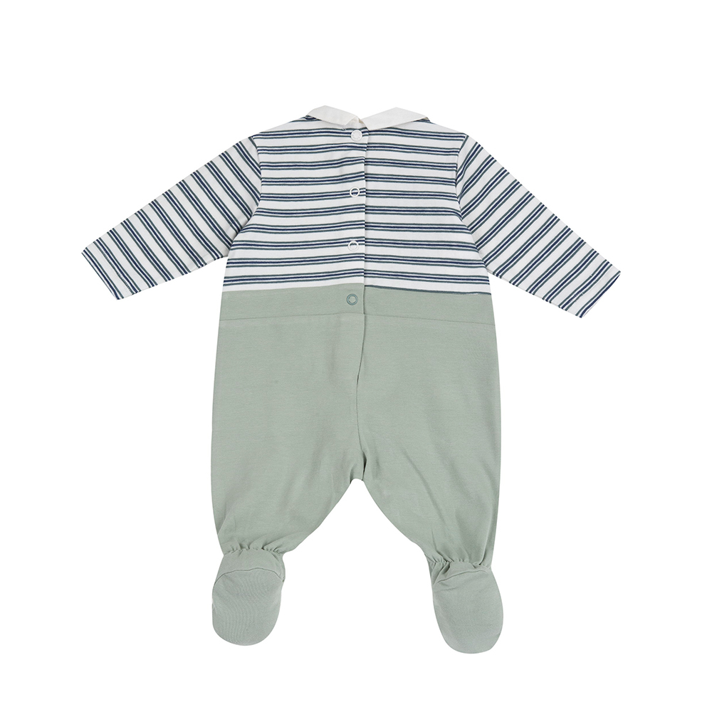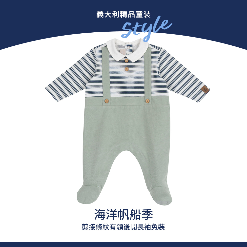 海洋帆船季-剪接條紋有領後開長袖兔裝