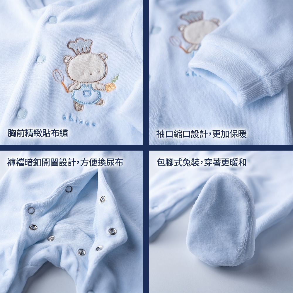 粉彩-剪毛絨繡圖前開兔裝(藍)