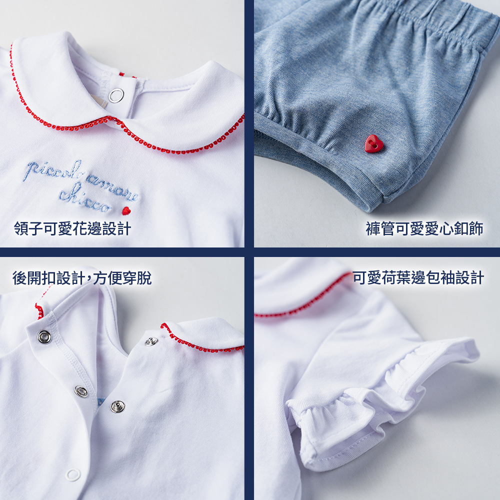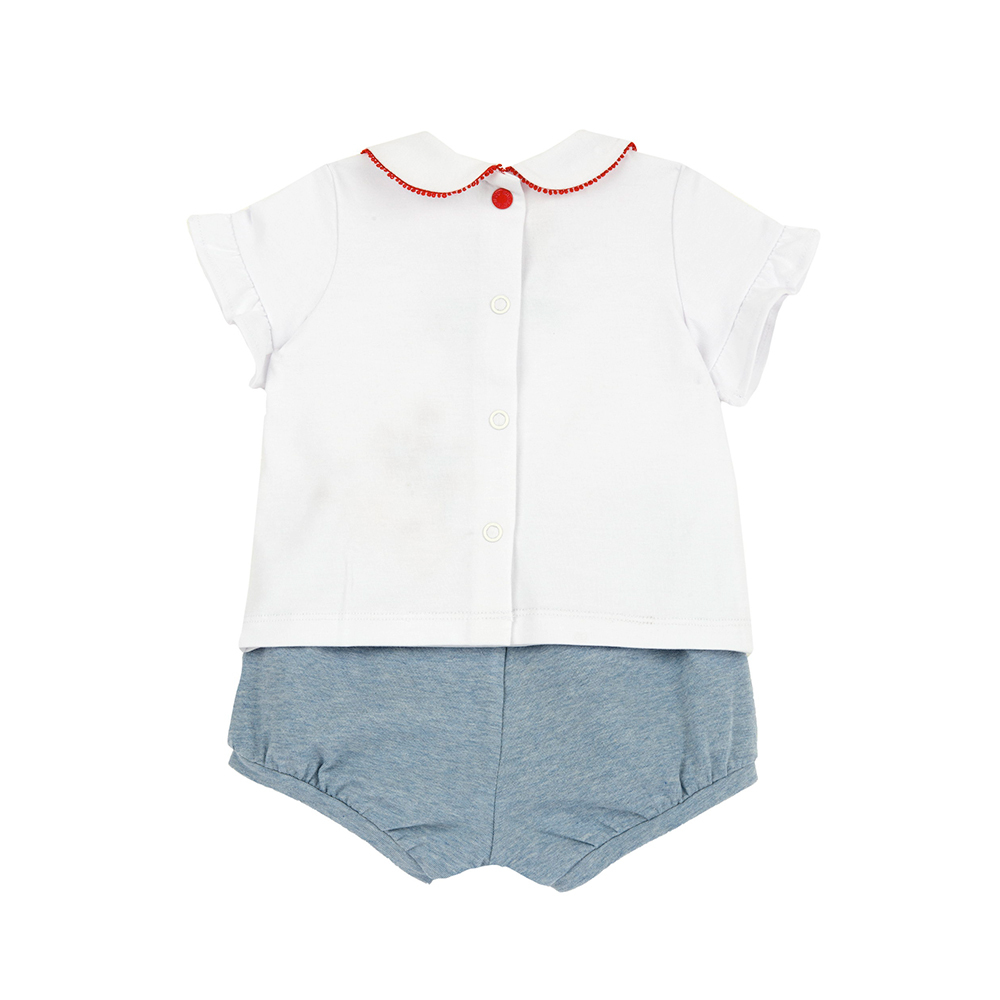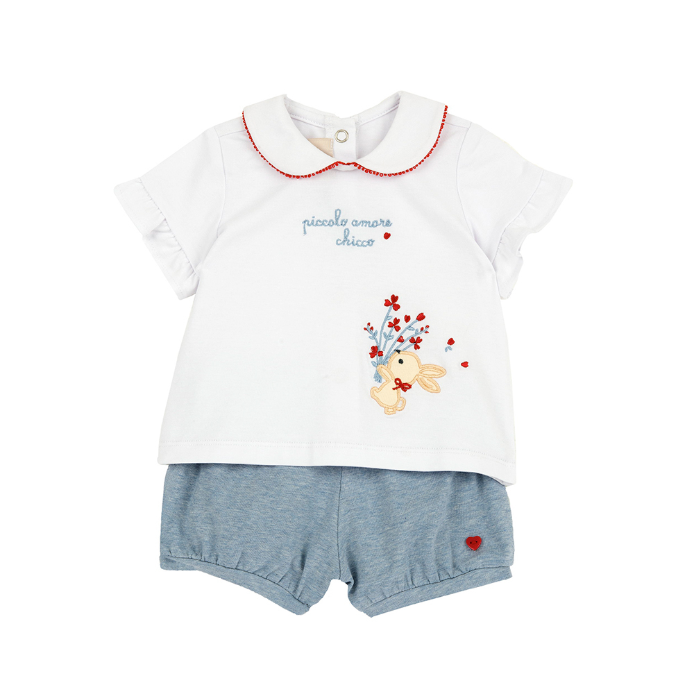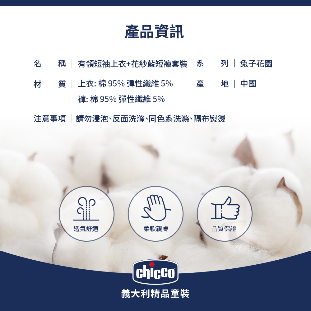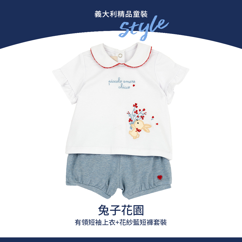 兔子花園-有領短袖上衣+花紗藍短褲套裝