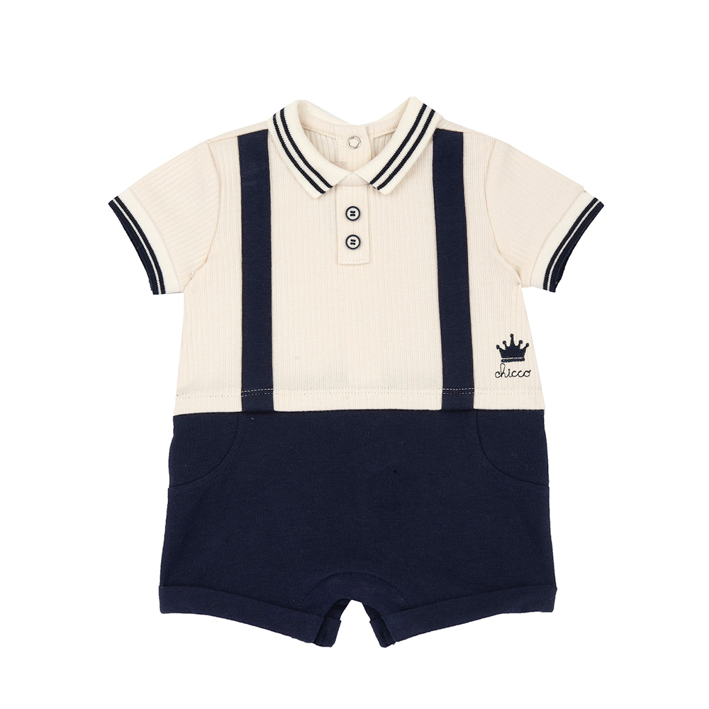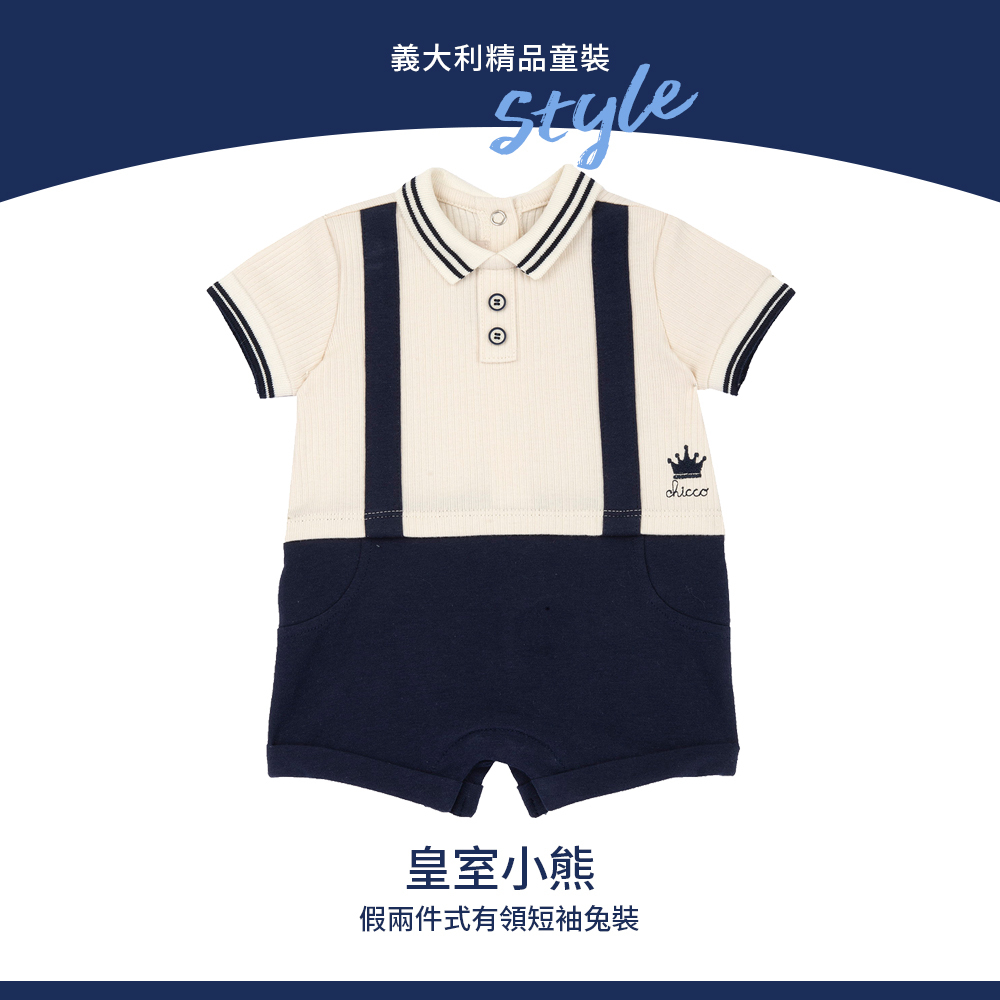 皇室小熊-假兩件式有領短袖兔裝