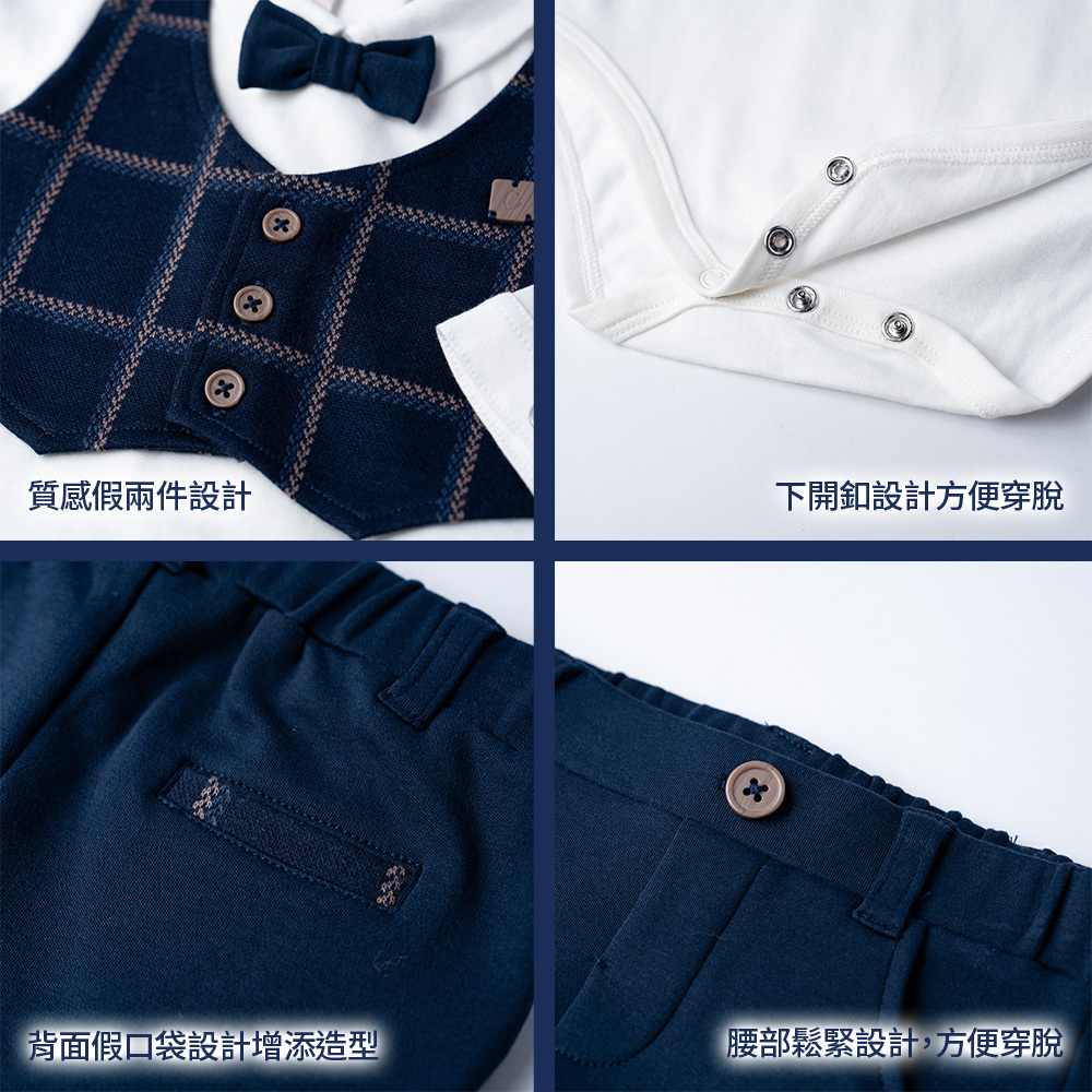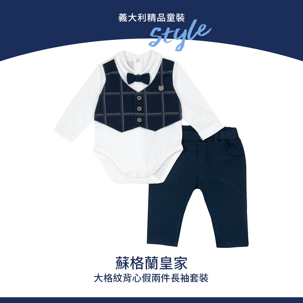 蘇格蘭皇家-大格紋背心假兩件式長袖套裝