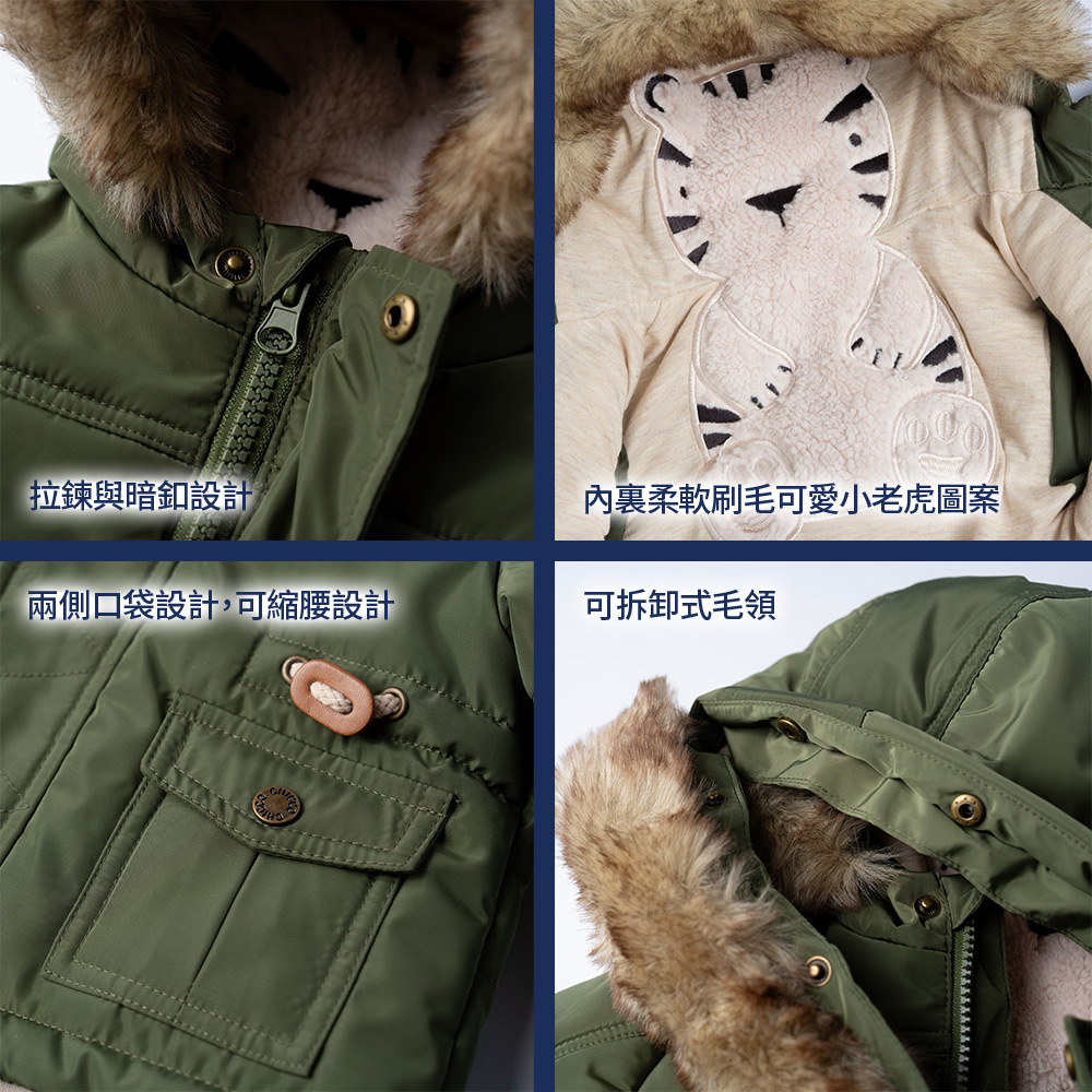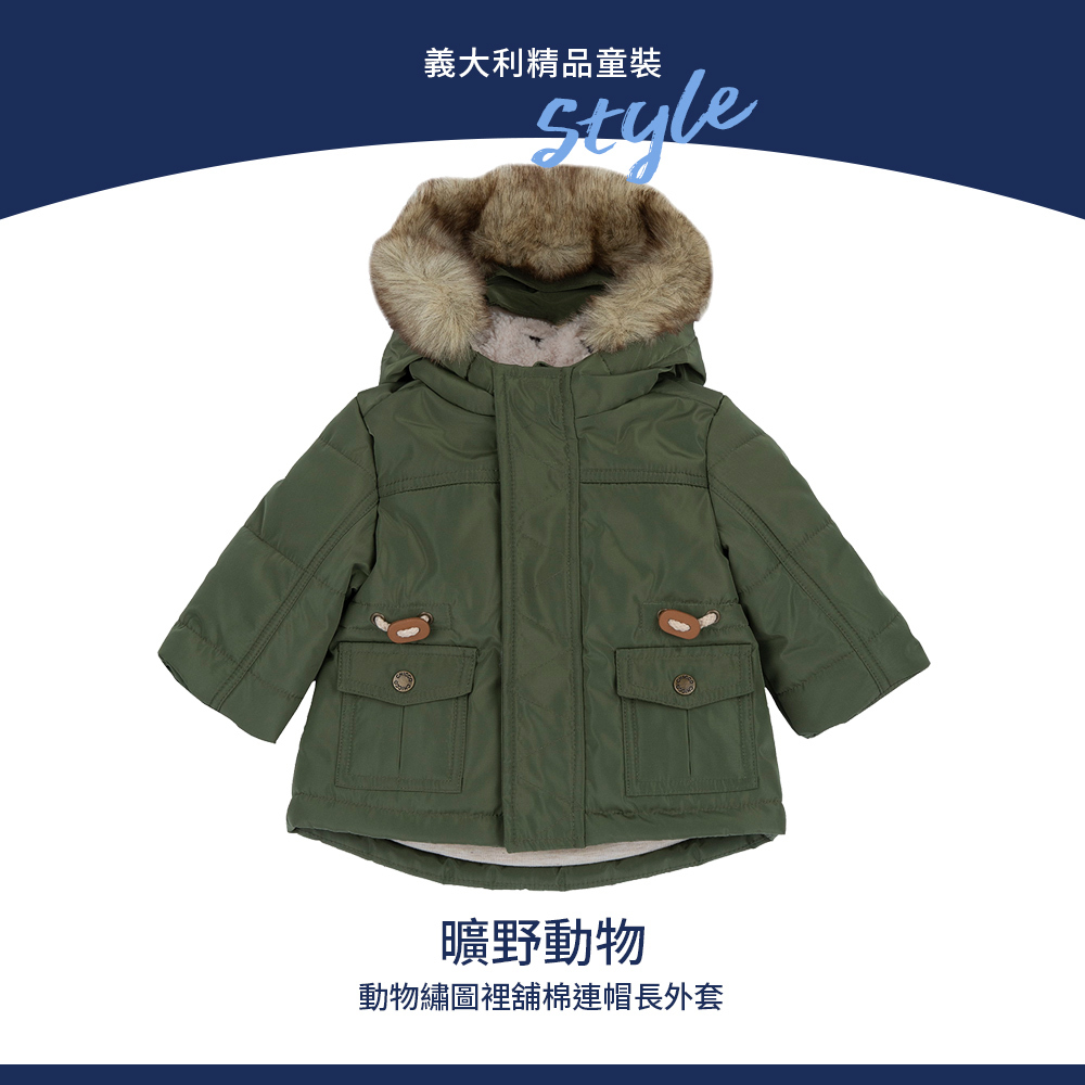 曠野動物-動物繡圖裡舖棉連帽長外套